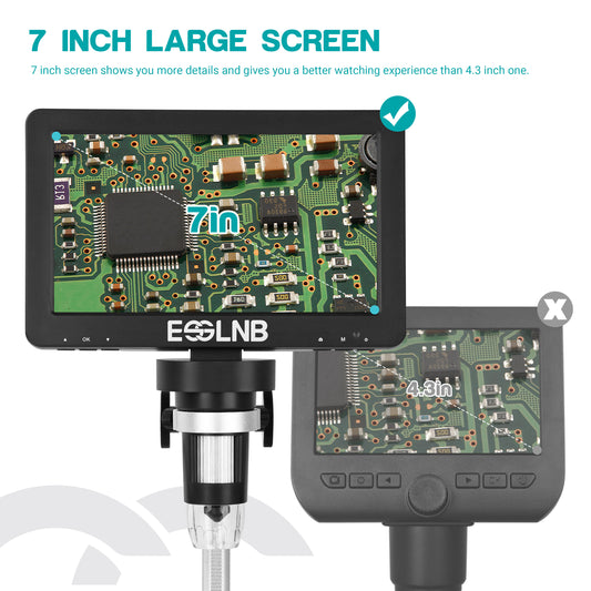 Digital Microscope 7" LCD Screen1080FHD Image with 32G Card Remote Control 8 Adjustable LED Lights&2 Fill Lights Metal Stand Built-in Rechargeable Lithium Battery